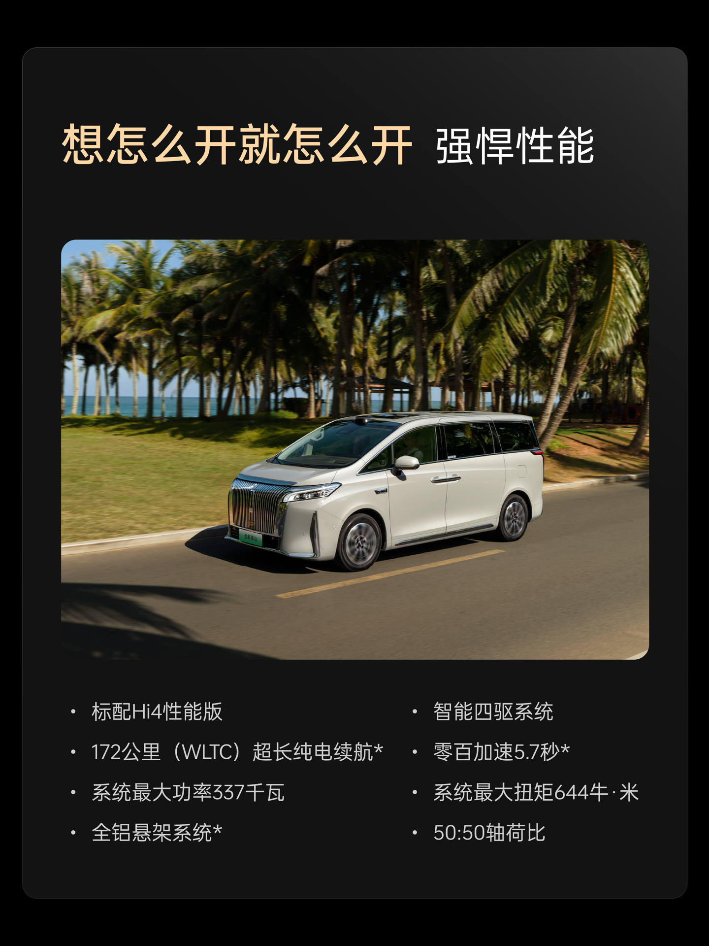 动力方面,新车继续搭载长城汽车 Hi4 性能版智能四驱电混技术,混联 + 4 挡 + 前后轴双电机的创新混动配置,集成了增程并联直驱等混动模式,系统综合功率 337 千瓦。