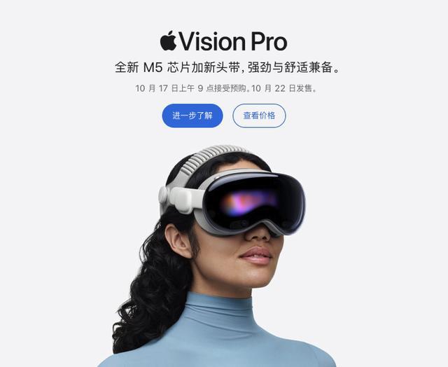 新款苹果Vision Pro也配备最新M5芯片,显示渲染效果改进,AI工作流程更快,电池续航时间更长,还采用全新双圈编织头带,佩戴更舒适,售价为29999元起,提供256GB、512GB和1TB几个存储容量,所有机型将在获得批准后发售。