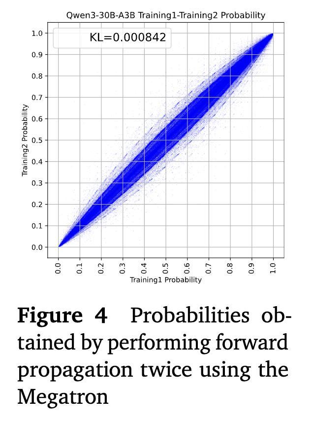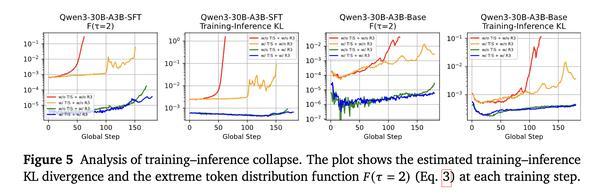 现代强化学习框架通常使用不同的引擎进行推理和训练用于部署,但这种架构上的分离可能导致token概率出现分歧,甚至可能导致灾难性的强化学习崩溃。然而,现有的改进方法并不能完全解决MoE模型上进行强化学习训练时出现的强化学习离线策略问题。