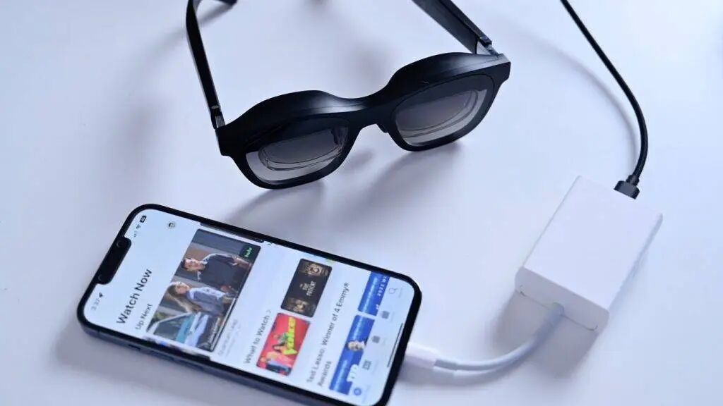 ▲ XREAL AR 眼镜和 iPhone 配对,直接投影后者画面,图源:Apple Insider