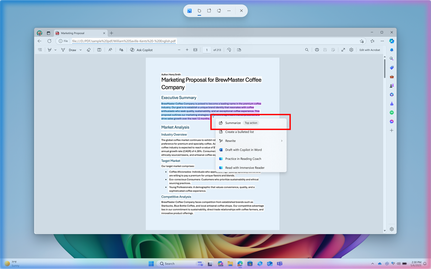 此外,Microsoft 365 用户还可使用 Copilot 的“摘要”功能,无需打开文件即可对 OneDrive 和 SharePoint 文件进行自动总结。