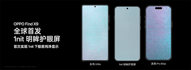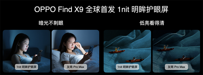 OPPO Find X9 系列全球首发 1nit 明眸护眼屏,把行业的护眼标准,推向全新高度。传统屏幕最低亮度仅能降至 2-5nit,用户在暗光环境下使用依然刺眼。为攻克这一痛点,OPPO 决定亲自下场,打造顶级护眼好屏。通过超 10 亿资金投入,OPPO 通过首创的自研屏幕双产线,构建起了从发光材料研发、高端生产制造,再到超高精度校准的全链路自主体系;并在自研 P3 屏幕显示芯片和 OPPO 芯链技术的加持下,实现了引领行业的微米级实时子像素校准,让屏幕在 1nit 极暗环境下仍能呈现极致纯净、通透的显示效果。