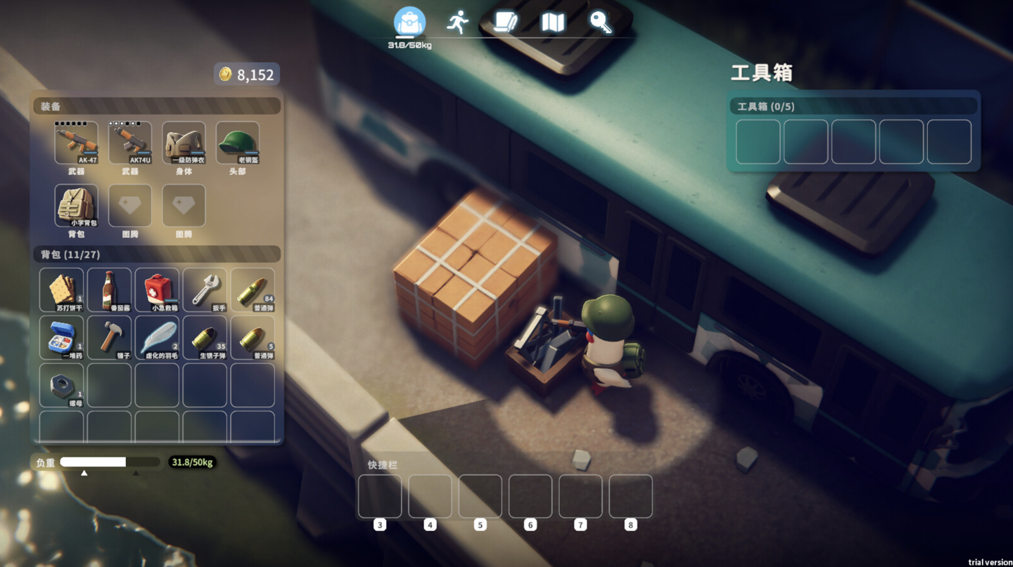 从初始属性平平无奇,开局只有一把枪的打工鸭开始,收集各种各样奇妙的物品,打造藏身处,强化装备,努力在鸭科夫的世界生存下去 —— 直到安全撤离。
