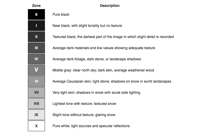 大家可能对中间调不太熟悉,它不是画面最中间的部分,我们参考安塞尔·亚当斯的区域曝光理论,在对动态范围的极致追求下,重点管控的是 3 区到 7 区的影调关系,这里面既有高光也有暗部,是最能体现影像厚实感的影调区域,是影像魅力和表现力的核心所在。