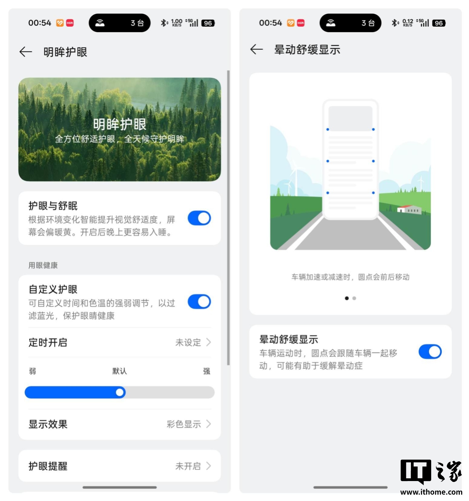 在基础的护眼功能之上,Find X9 系列还加入了主动式 AI 护眼功能,可以智能提醒用户养成健康的用眼习惯。甚至,它还首发了“乘车防晕关怀”功能,通过特定显示来平衡人体感知,对晕车用户非常友好。