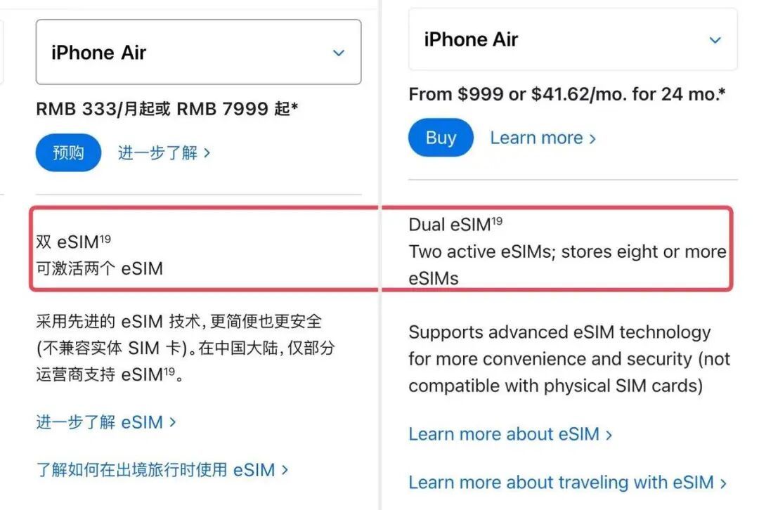 我们正在与监管部门密切合作,争取提高单台 iPhone Air 的 eSIM 数量限制。
