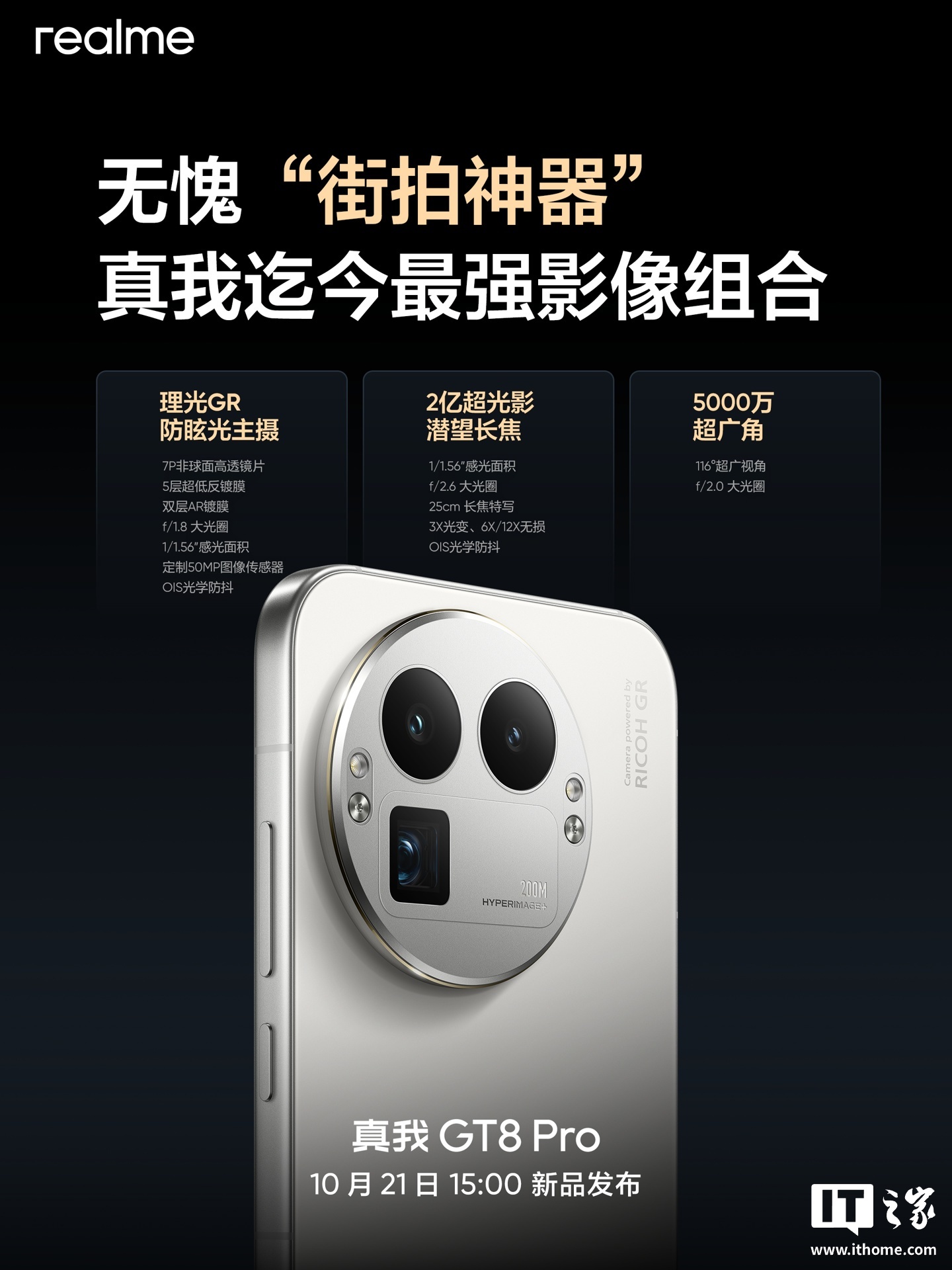 IT之家 10 月 18 日消息,真我 realme 副总裁、全球营销总裁、中国区总裁徐起今日继续预热真我 GT8 Pro 新机,并公开了其影像配置: