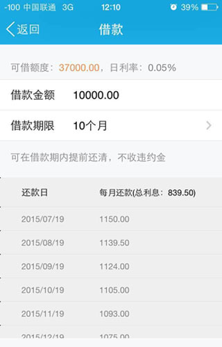 6、点击借钱并填写自己的借款金额和期限,会详细出现每月还款额。