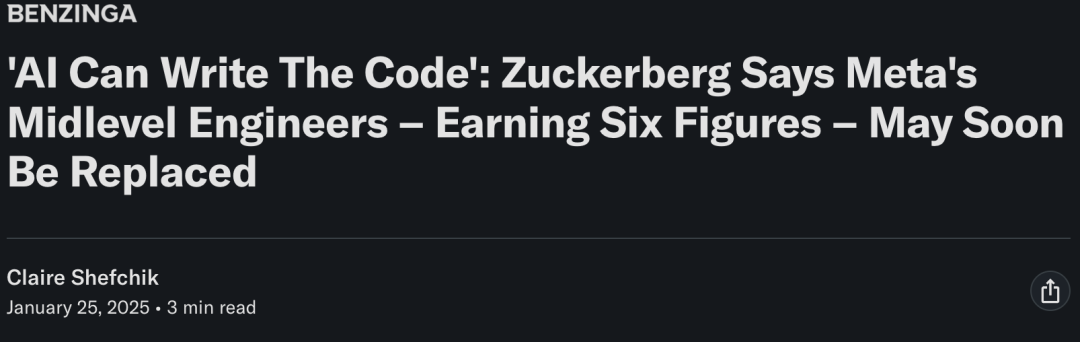 Meta CEO扎克伯格此前在1月做客Joe Rogan播客时也公开表示,Meta正全力推进内部AI应用。他预计,到2025年底,Meta内部的AI将具备「中级工程师水平」。