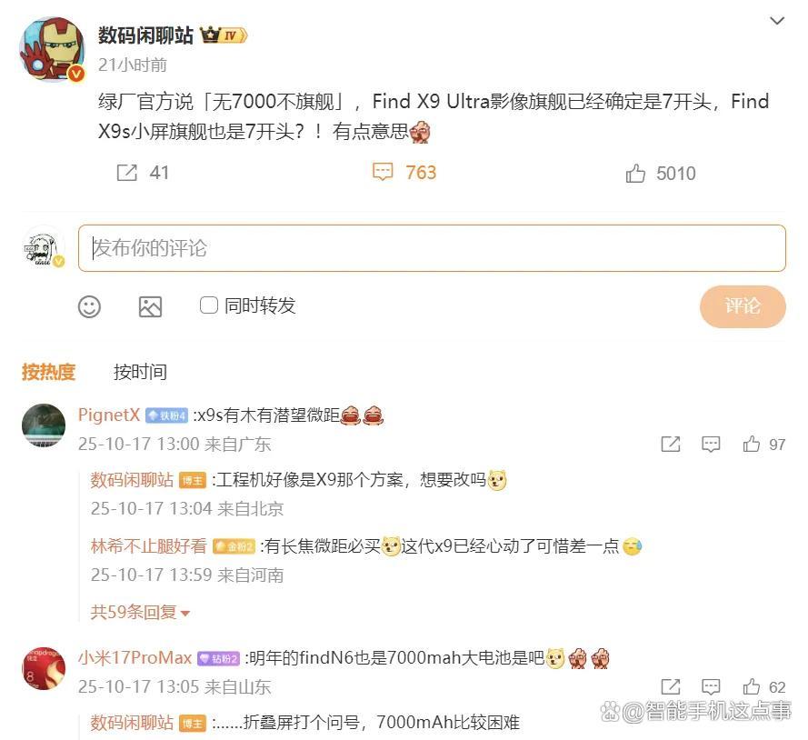 加上延续“无7000不旗舰”的思路,这意味着即将登场的Find X9 Ultra和Find X9s都将搭载超过7000mAh的超大容量电池。