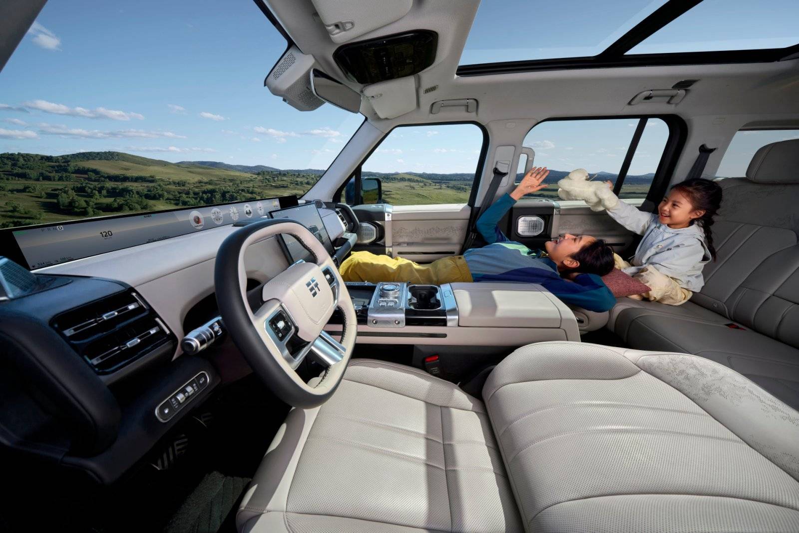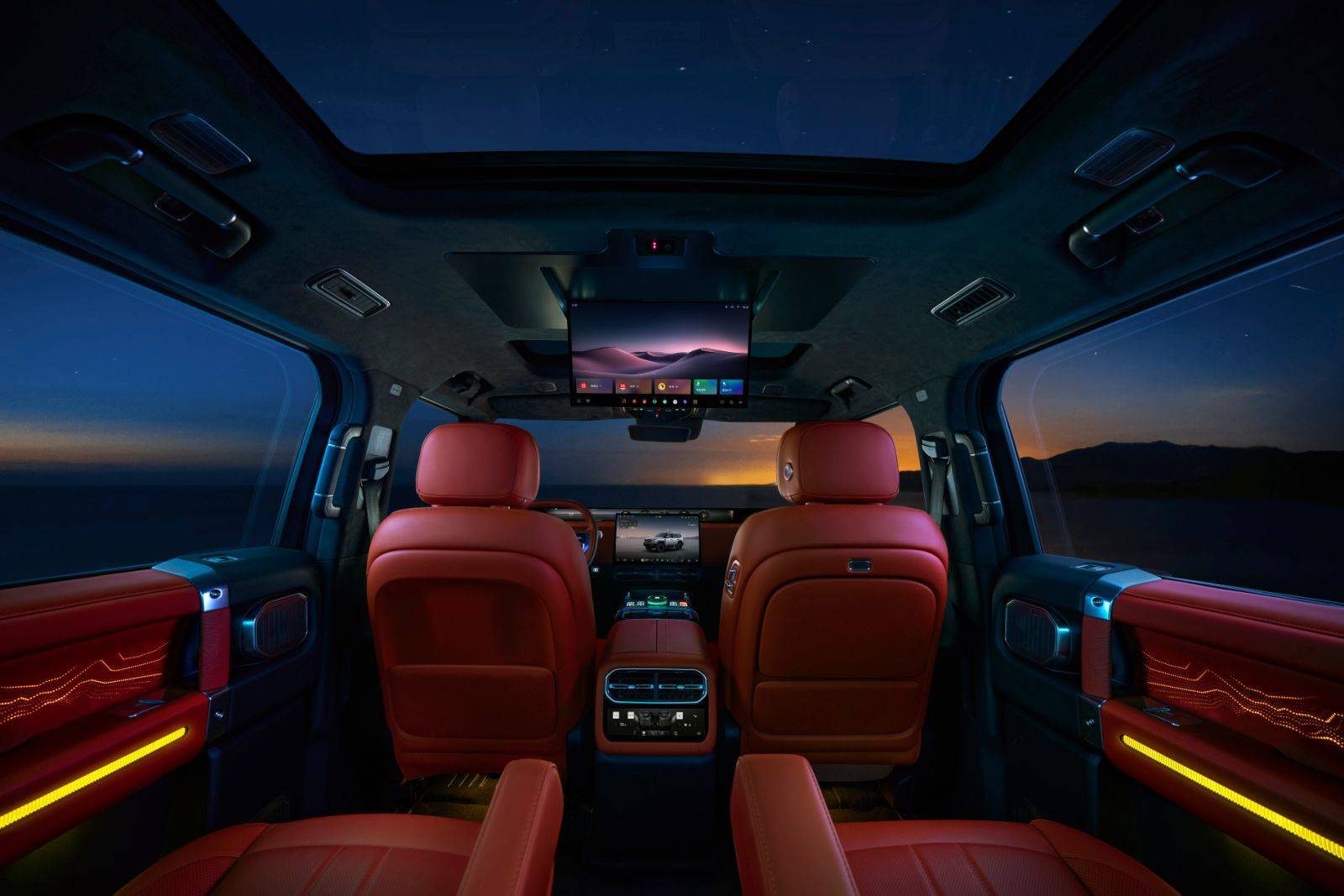 在智能设备方面,新车采用 35.4 英寸山脉天际屏 + 15.6 英寸中控触控大屏 + 17.3 英寸家庭影院大屏 + 后排专属 8.88 英寸空调屏的组合。前排主驾可在远端屏查看车辆信息,副驾可在中控屏操作车辆设置,后排孩子看动画片,互不干扰。
