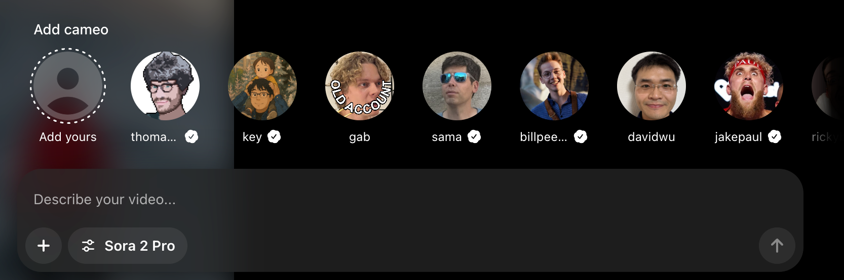 原则上,OpenAI 是禁止未经同意,制作和生成在世公众人物的视频,这也是 Sora App 中推出 Cameo 最重要的原因,帮助用户可以分享自己的角色。