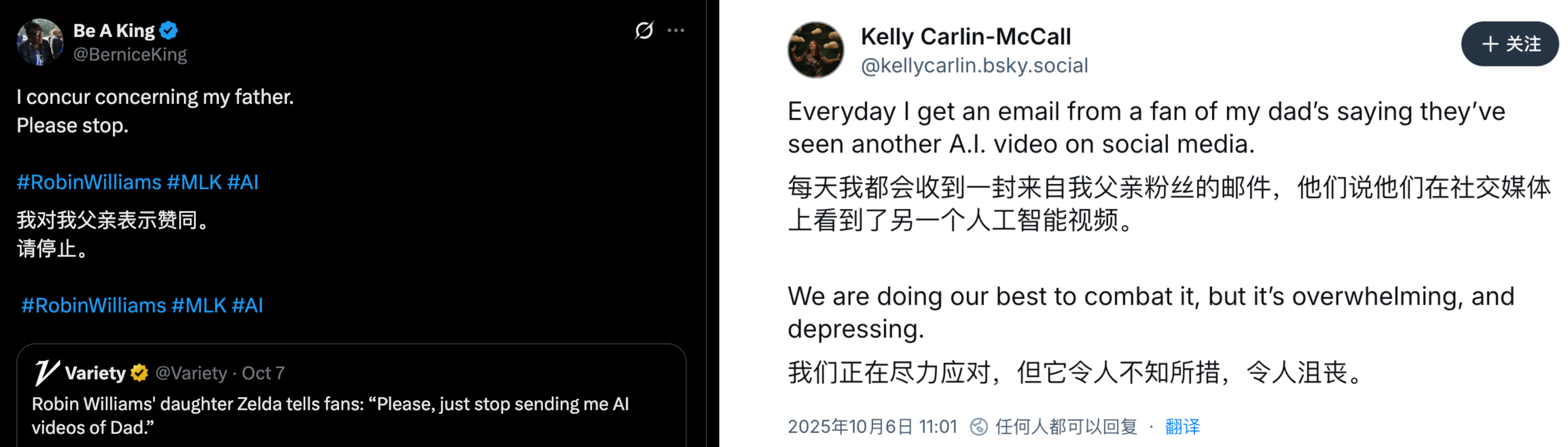 逝世人物的恶搞视频,引起了相当一部分家属的不满。除了长期反对 AI 生成内容的 Zelda Williams,在 Instagram 上愤怒的表示这些视频相当令人恶心。
