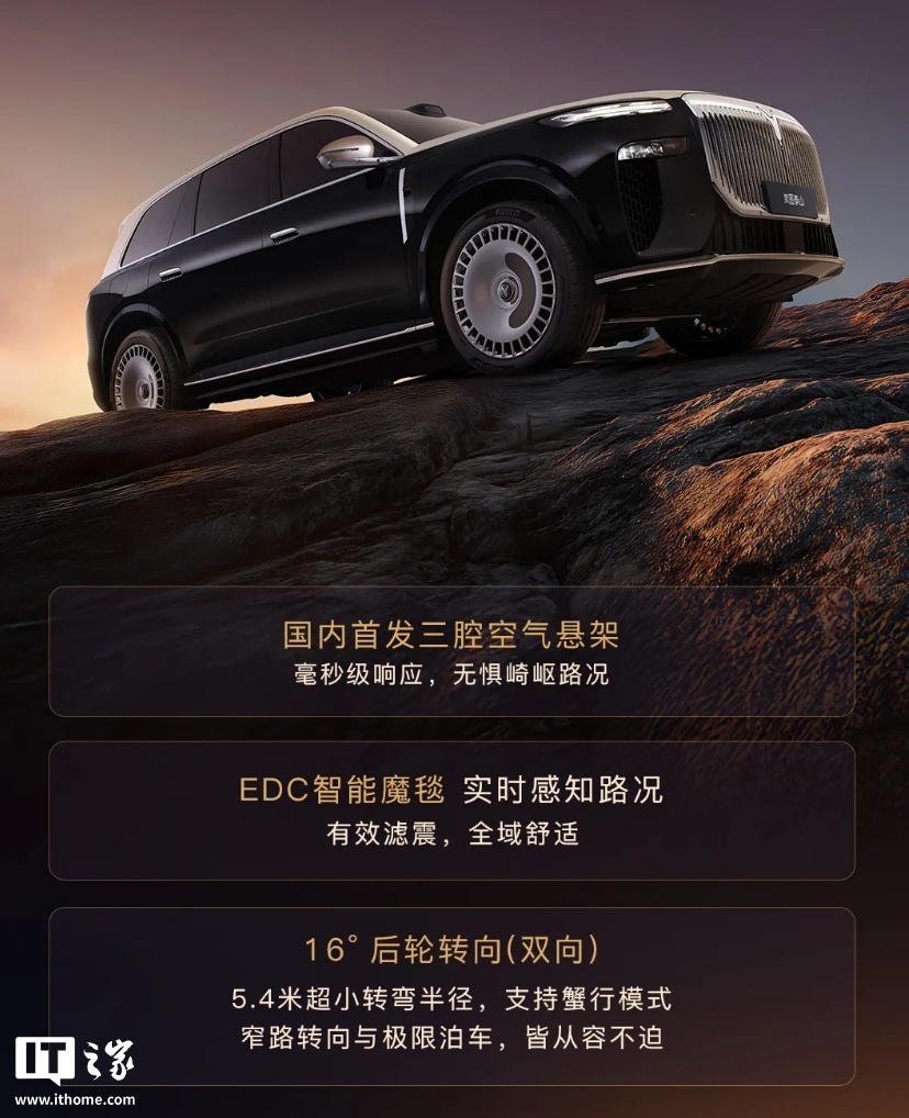 此外,岚图泰山国内首发三腔空气悬架,以及 EDC 智能魔毯、16° 后轮转向(双向),还配有超感 AI 云舒零重力座椅。