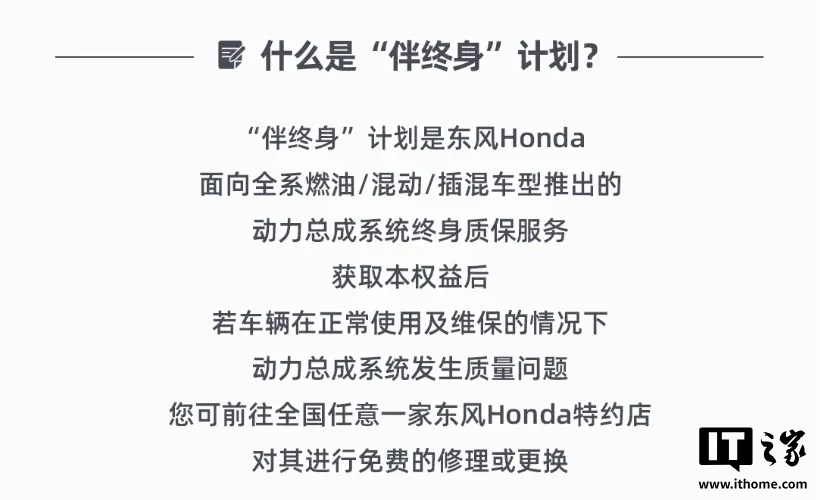 IT之家 10 月 20 日消息东风本田今日在包括深圳广州天津太原西安贵阳等在内的多座城市同步举办发布会,正式推出了一项全新的服务产品 ——“伴终身”动力总成终身质保服务。