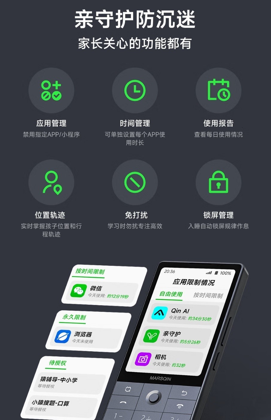 多亲 F25 还搭载多项家长管控功能,包括 App 使用管理、实时定位、自动锁屏等。