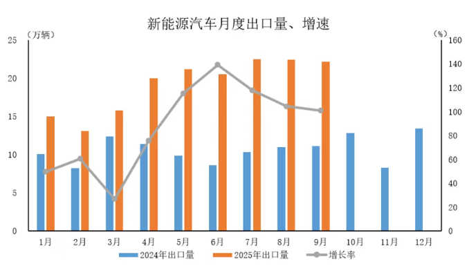 2025 年 9 月,新能源汽车出口 22.2 万辆,环比下降 0.9%,同比增长 1 倍。