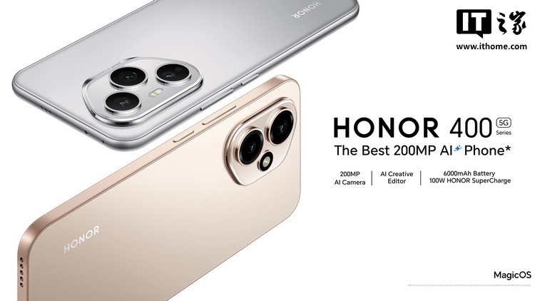 作为参考,荣耀 X00 系列目前最新的机型是 400 系列,采用 6.55 英寸 2736×1264 OLED 屏,支持 120Hz 刷新率,搭载 2 亿超清写真人像主摄,实现档位唯一 6X 超清长焦人像,发布时标价 2499 元起