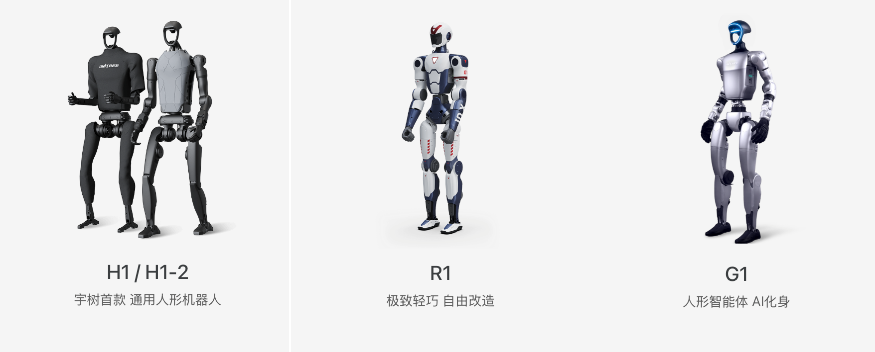 宇树的回答是,先继续在人形机器人领域深耕。目前宇树的三款人形机器人,分别是 2023 年 8 月发售的 H1,高端通用人形机器人、去年五月发售的 G1、以及今年 7 月发布的 R1,入门消费级人形机器人。