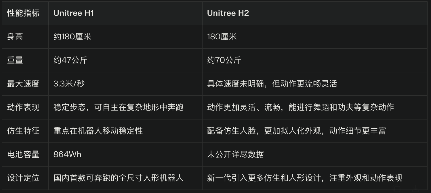 能力的提升,进一步扩展了 H2 的应用前景;从工业上的自动化巡检、仓储搬运;到更贴近普通用户的娱乐演示和陪伴服务等。