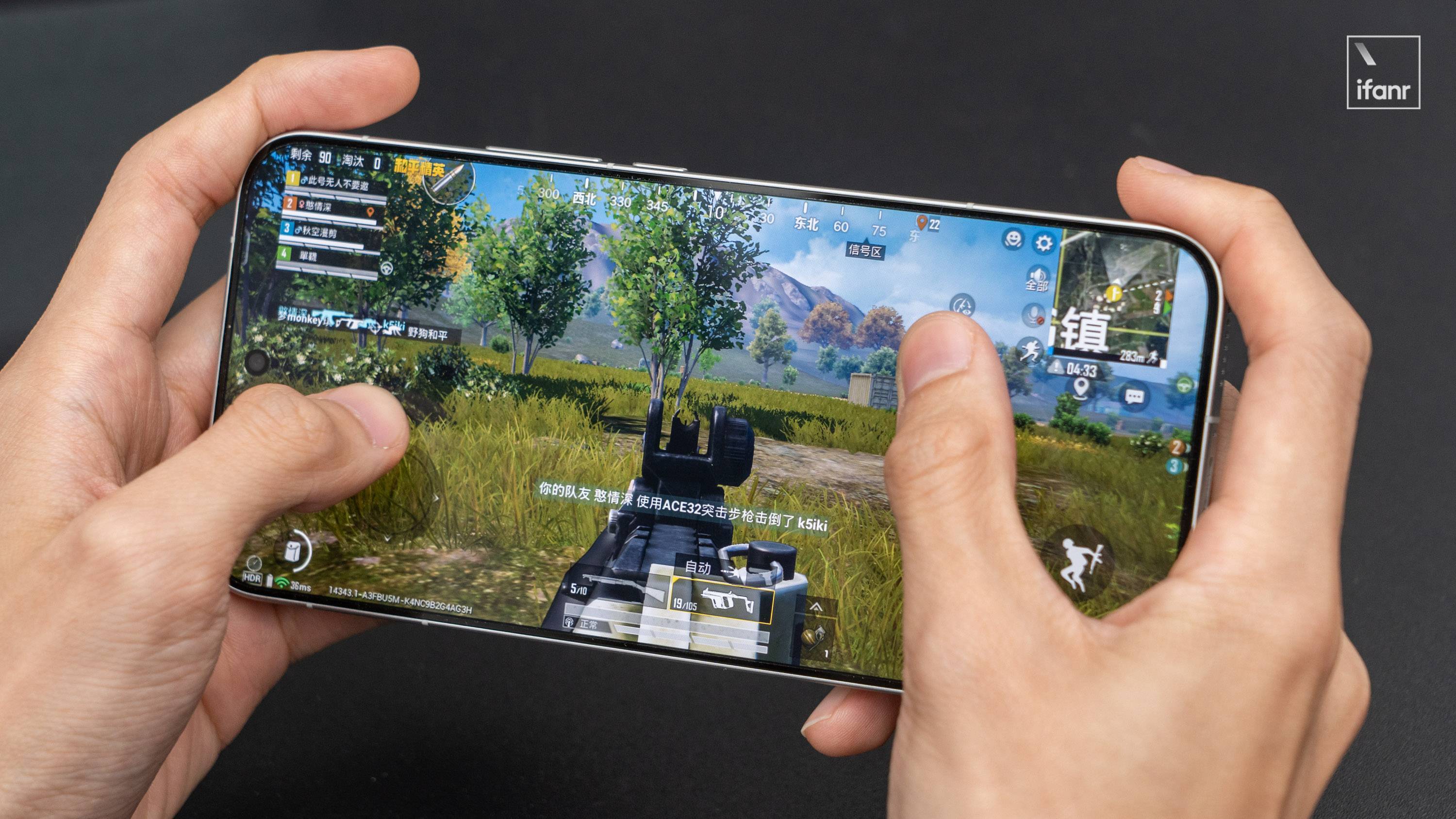 屏幕的瞬时触控采样率提升到 3200Hz,10 指触控采样率能达到 360Hz,点击和滑动触控分别能够控制在 24.58ms 和 44.16ms,玩《和平精英》时基本不会遇到点击但不响应的情况,开镜射击的体验更加顺手。加上手机有包含边缘按键的触控和误触、轮盘灵敏度等优化,游戏中感觉操控的精准度会比同价位的机型再高一点。