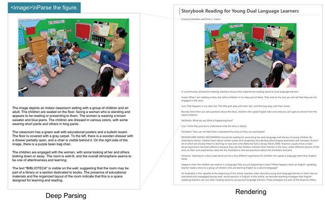 在书籍与论文场景中,深度解析模式能够生成密集的图像描述,实现自动化的图文内容识别与转写。