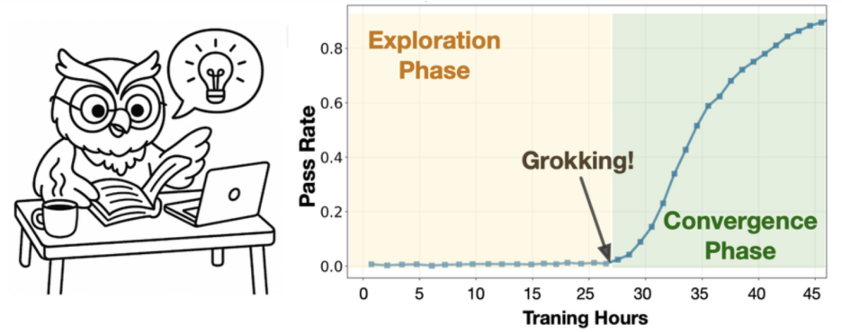 研究者将此描述为 「RL grokking」:那不是微调的延展,而是「想通了」的瞬间。