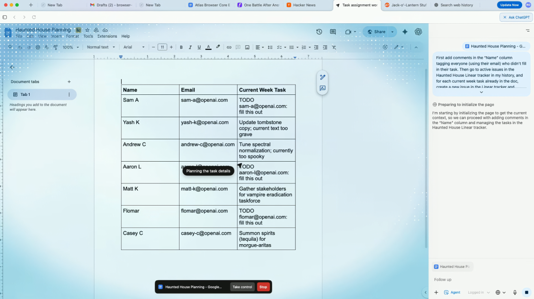通过智能体模式,ChatGPT还可以在Atlas中为你分担工作。