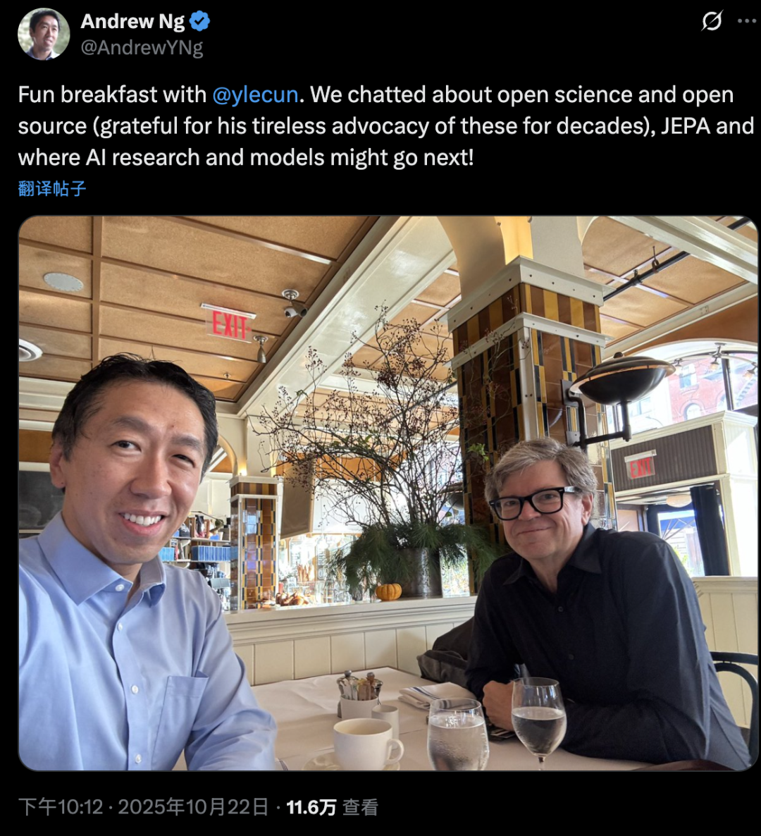 LeCun不语,只是一味的和吴恩达吃早餐。