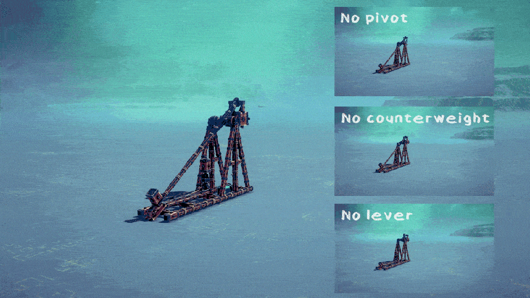 只要一个地方偏差,整个机器就可能失效:没配重,打不出去;缺支点,原地转圈;少了杠杆,石头飞不起来。