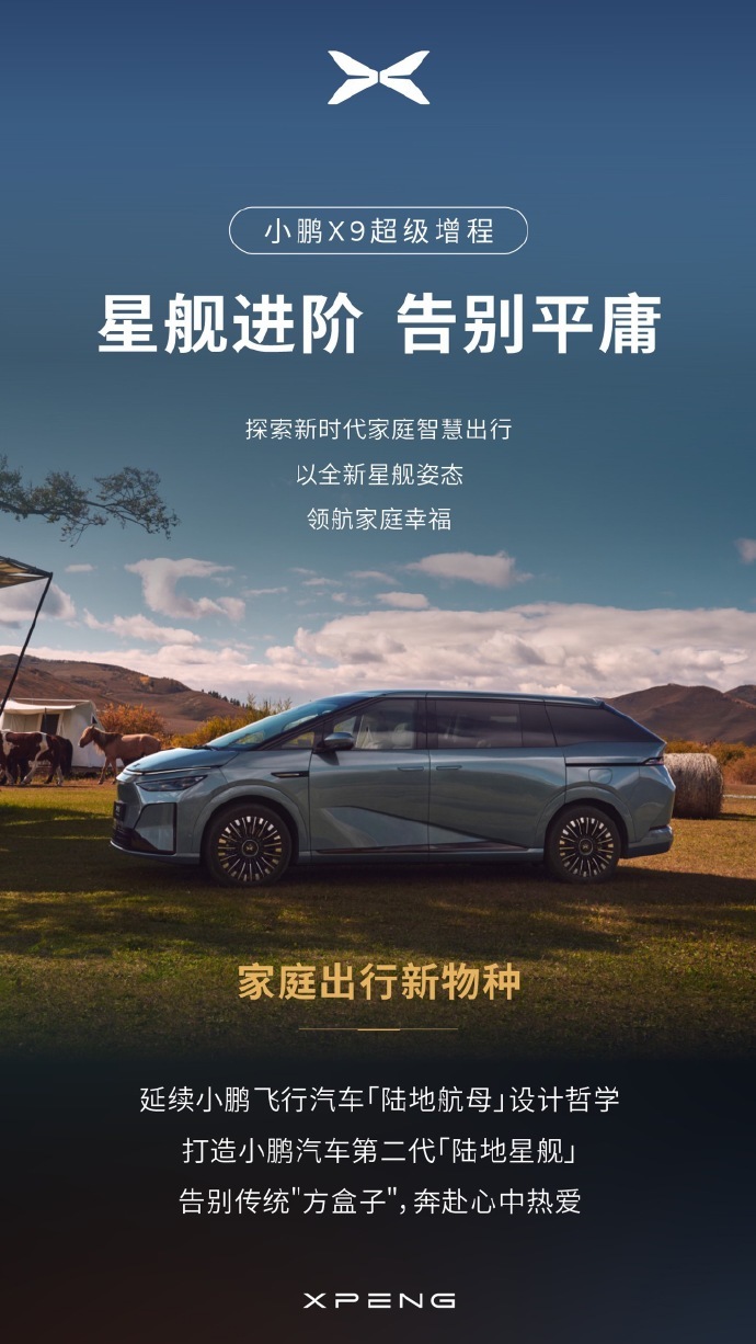 凤凰网科技讯 10月23日,小鹏汽车董事长何小鹏发文宣布,小鹏X9超级增程,面向全球的下一代增程产品,终于来了。