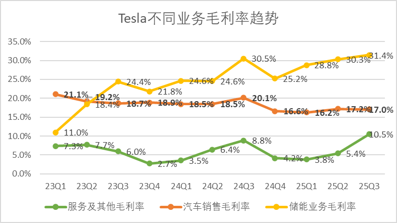 同时受益于储能和造车业务的营收增速,三季度服务业务的收入和利润水平也达到了相对高位,毛利水平也得到了修复。