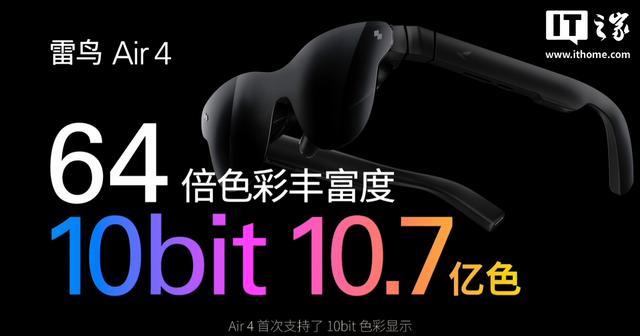 在该芯片的加持下,雷鸟 Air 4 首次支持了 10bit 色彩显示,并成为全球首创 HDR10 显示眼镜。新品还搭载雷鸟自研的孔雀光引擎 2.0,搭配第 5.5 代 Micro-OLED 屏,支持 120Hz 刷新率、135 英寸巨幕等,支持 2D 转 3D 视频。
