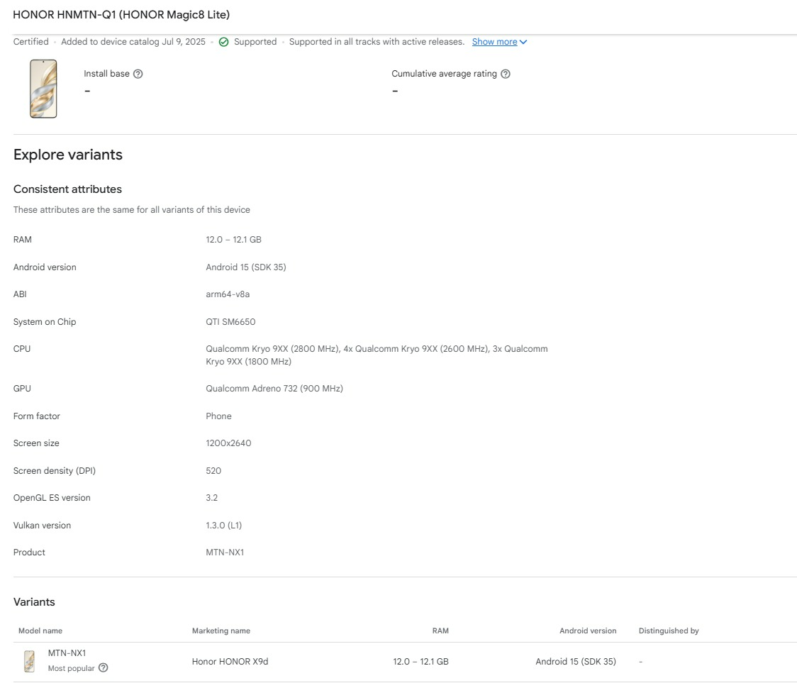 性能方面,认证平台存在矛盾之处。最初的平台列表错误地将其芯片标为老旧的骁龙 650,而谷歌 Play Console 的信息则指向骁龙 7+ Gen 3。