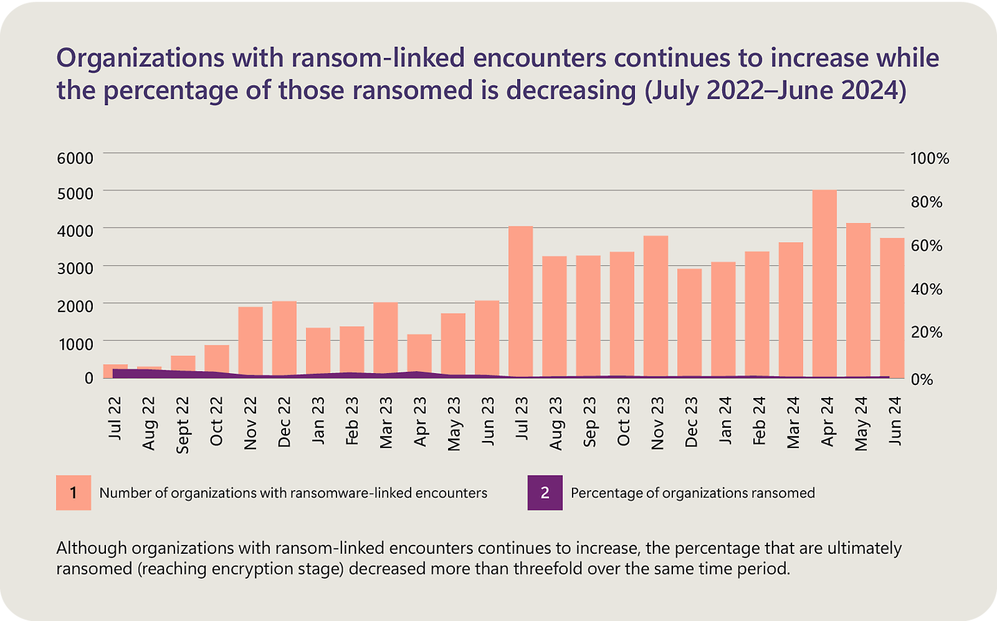 微软基于《2024 年数字防御报告》,在所有最终实现加密的勒索软件攻击中,超过 90% 的初始入侵点源自未受有效管理或已停止支持的设备。