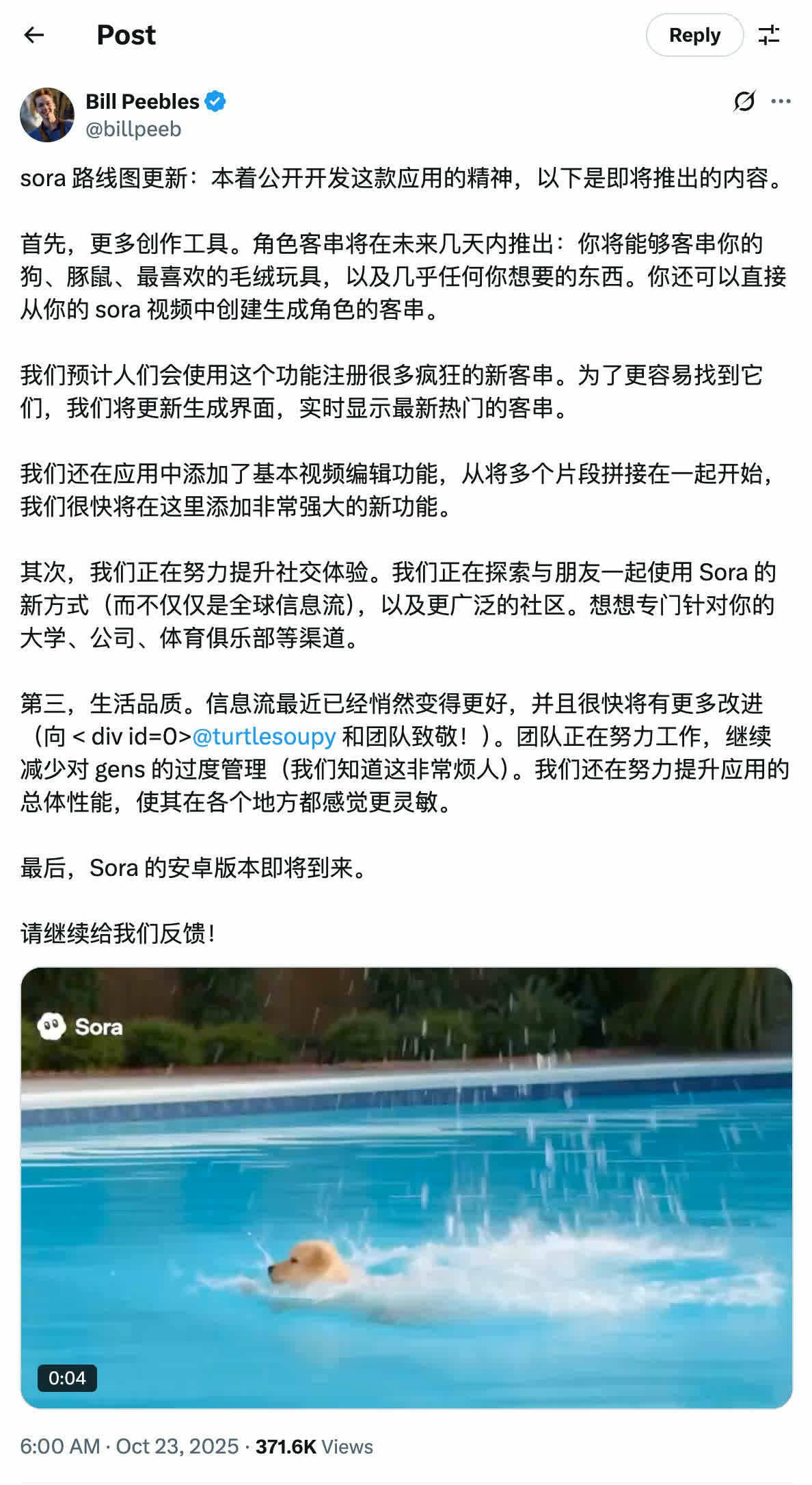Sora App 更新预告:宠物可「客串」AI 视频,安卓版也将上线