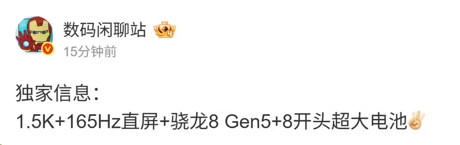骁龙至尊版、6.83英寸165Hz超高刷屏、7800mAh电池+120W闪充。