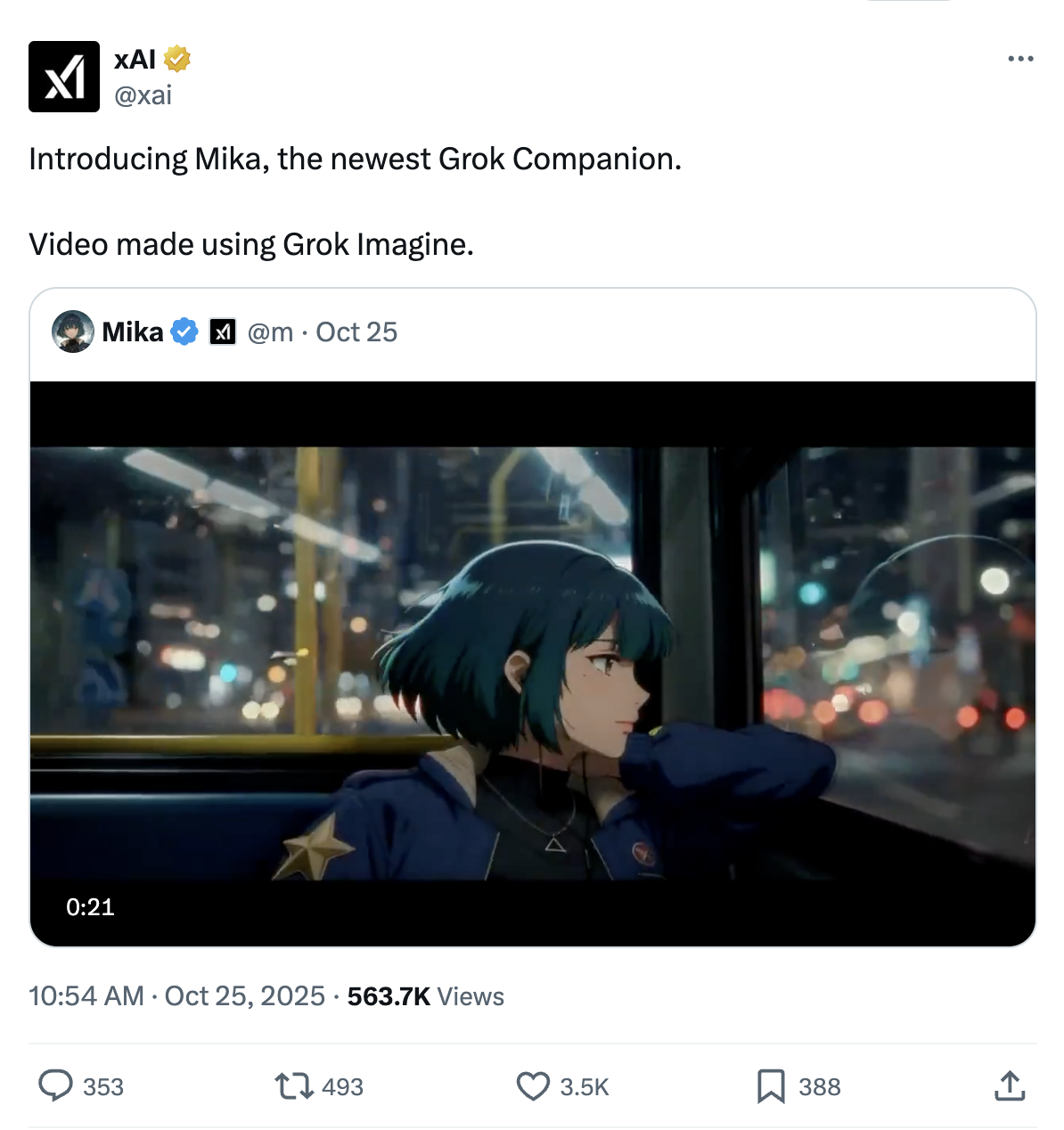 日前,xAI 官方在 X 平台发文,宣布 Grok 伴侣应用虚拟角色「Mika」已正式推出。