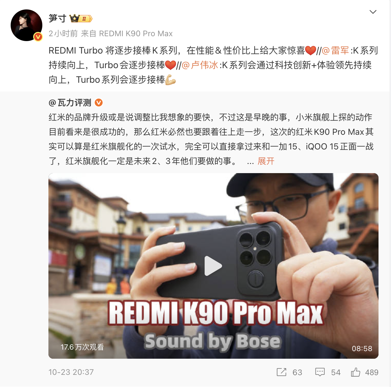 小米集团合伙人、总裁卢伟冰日前在微博表示:「K 系列会通过科技创新与体验领先持续向上,Turbo 系列会逐步接棒。」小米集团董事长兼 CEO 雷军也发文强调:「K 系列持续向上,Turbo 会逐步接棒。」