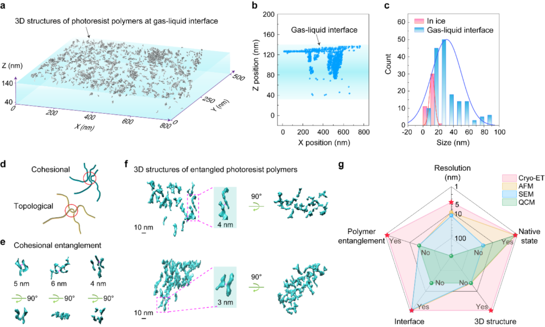 据《科技日报》报道,近日,北京大学化学与分子工程学院彭海琳教授团队联合多方科研力量,首次利用冷冻电子断层扫描技术,在原位状态下解析了光刻胶分子在液相环境中的三维结构、界面分布与缠结行为。