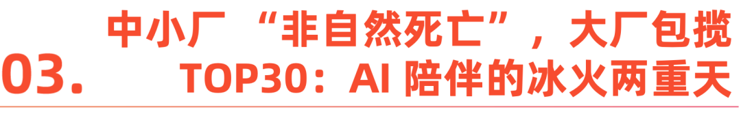 客观原因在于,无论是AI产品还是专精的AI陪伴类产品,都呈现出“唯大厂论”,国内的创新公司和中小厂集中出现持续性不足的问题。