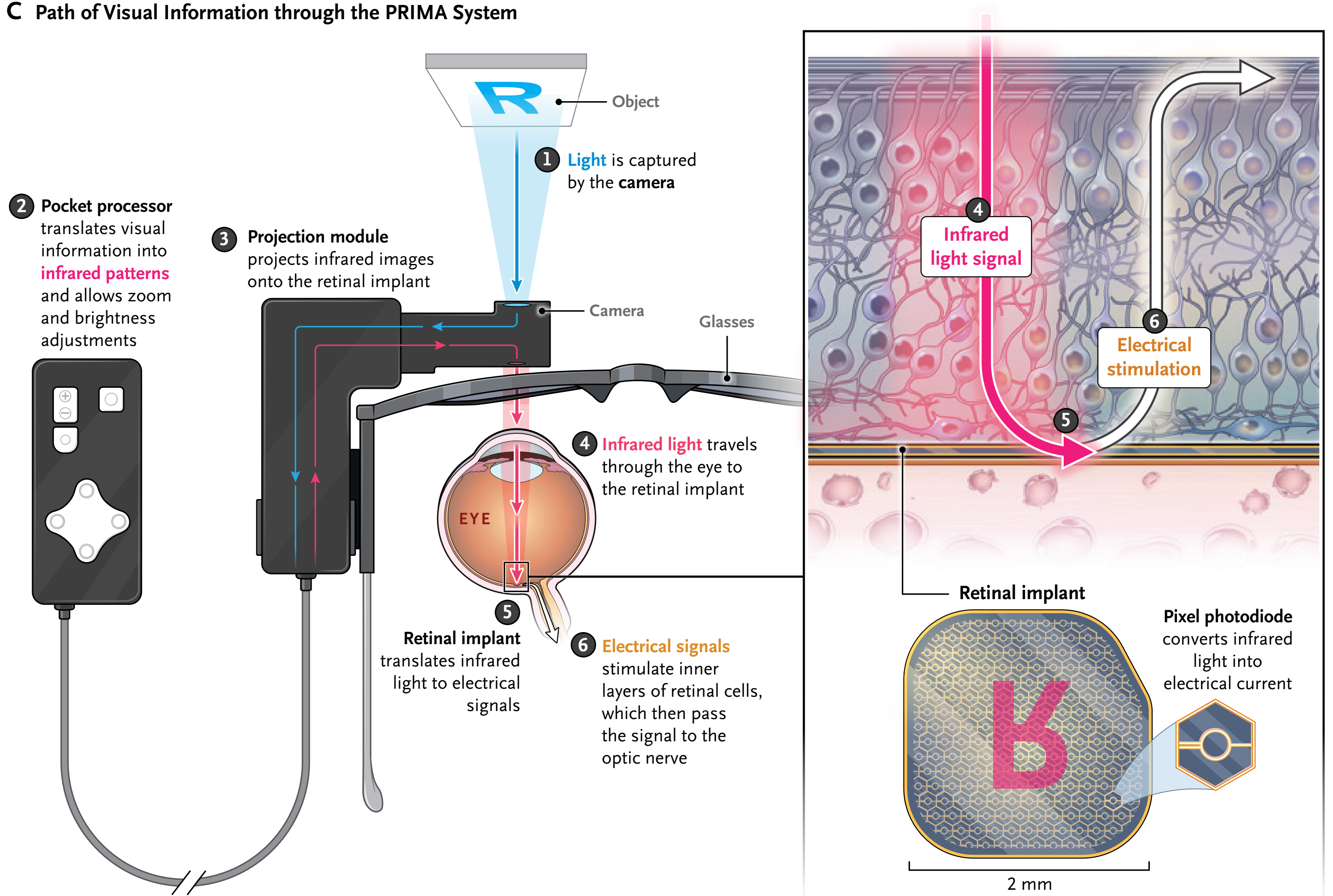 一句话总结,PRIMA 不是修好旧的视网膜,只是给眼睛装了一个新的感光部件。