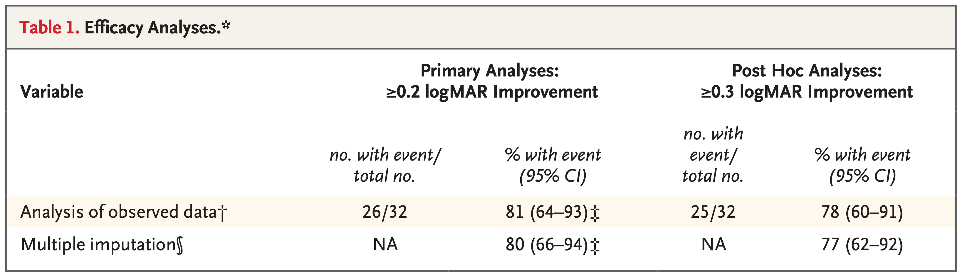 ▲ 试验结果,临床上有意义改善的定义为,至少 0.2 logMAR 的改善(即最小分辨角的对数;相当于增加 ≥10 个字母)