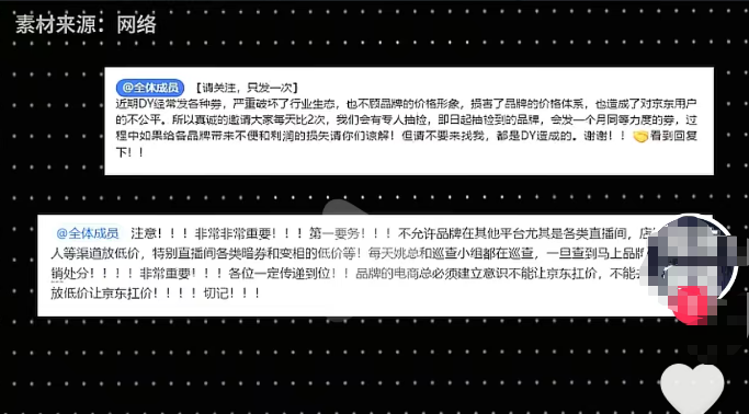 事实上,此次流传出来的只是真假难明的截图。即使截图为真,也只是一些采销为了给消费者争取低价的行为,而非京东利用市场支配地位去限制商家。