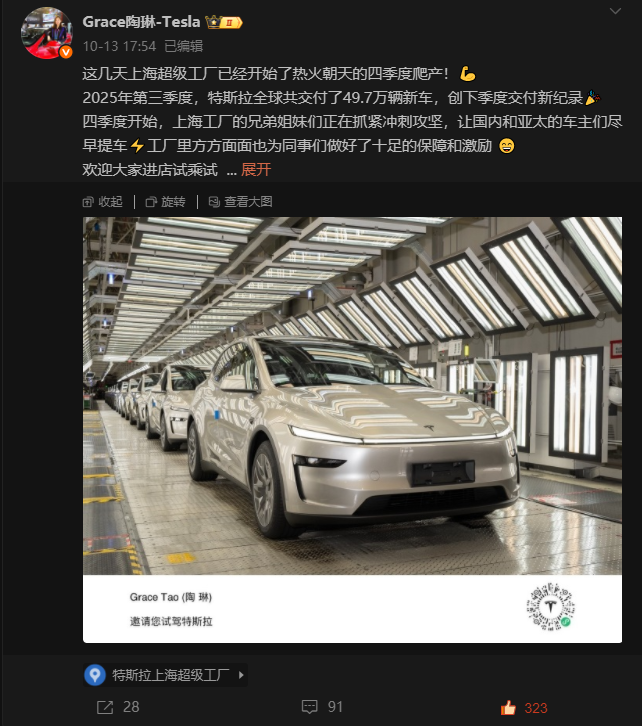 其实,早在半个月前,特斯拉公司副总裁@陶琳就有发博透露过,上海超级工厂最近已经开始了第四季度的爬产模式,以便国内、亚太的新车主们尽量早些提到车。