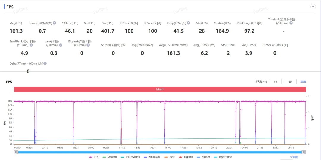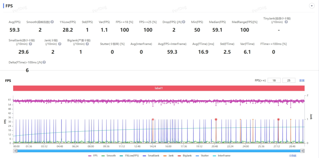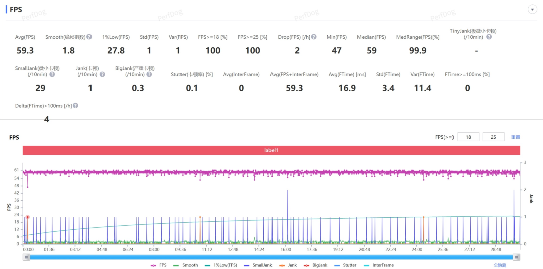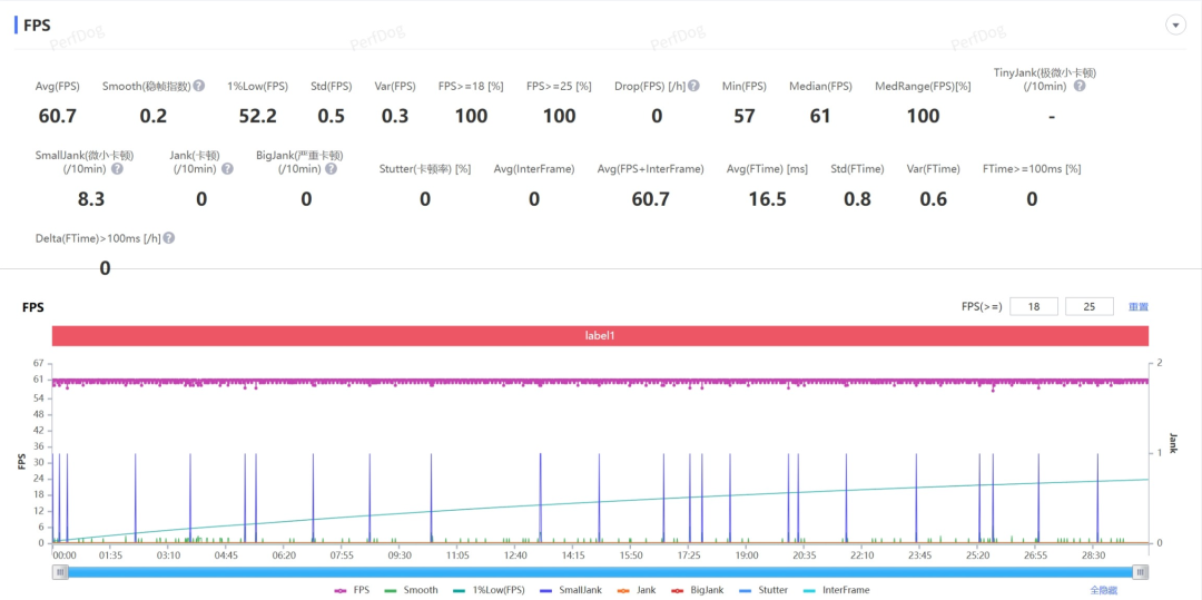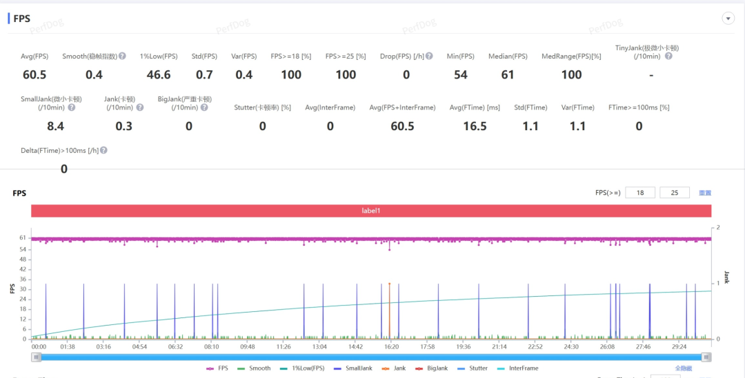 先看看经典测试项目:原神-须弥城跑图。根据Perfdog监测的数据,这俩机器都能轻松稳住60帧一条直线。