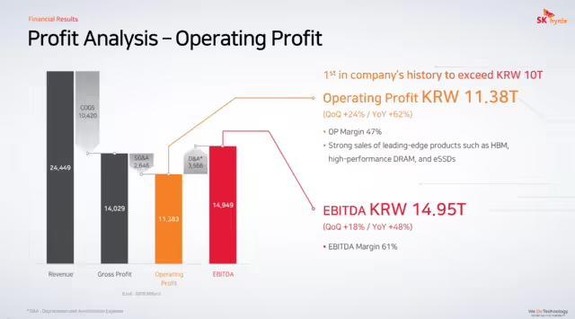 IT之家 10 月 29 日消息,SK 海力士今日公布了其最新财报,营业利润达 11.38 万亿韩元(IT之家注:现汇率约合 563.99 亿元人民币)同比增长 62% 创历史新高,营收增长 39% 达 22.4 万亿韩元,净利润率为 52%。SK 海力士在电话会议中表示,预计将迎来一场“超级繁荣”。