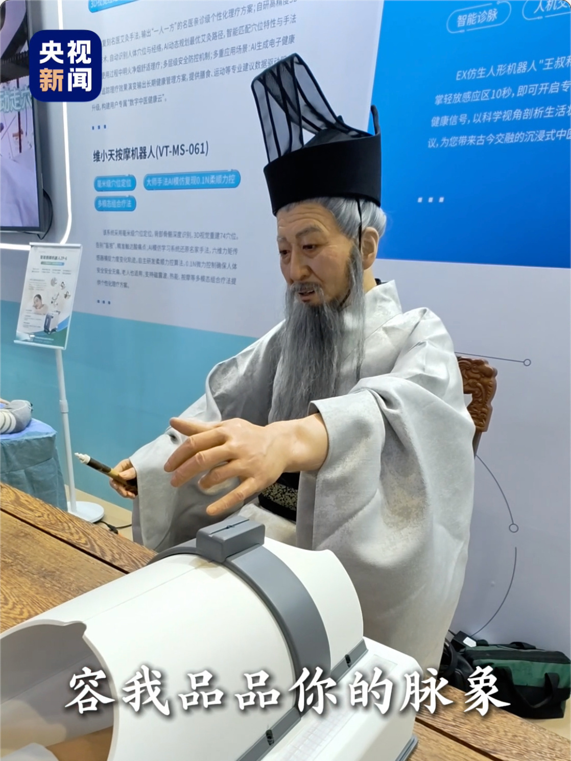 IT之家 10 月 29 日消息,央视新闻今日发布视频,总台智享未来保姆机器人大会成都智慧康养机器人展演现场,一位机器人老中医正在诊脉。