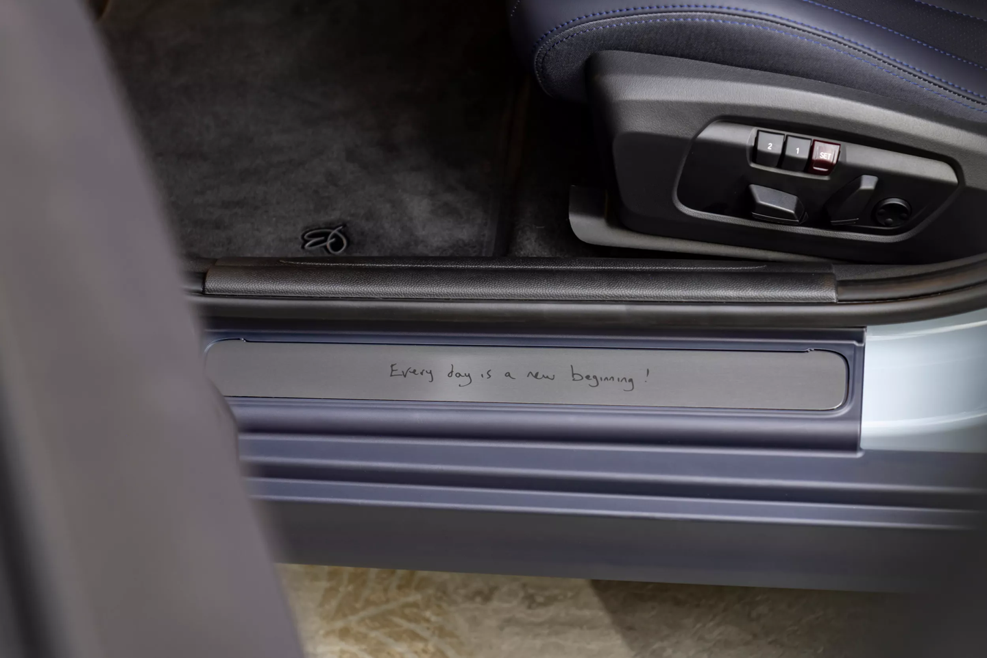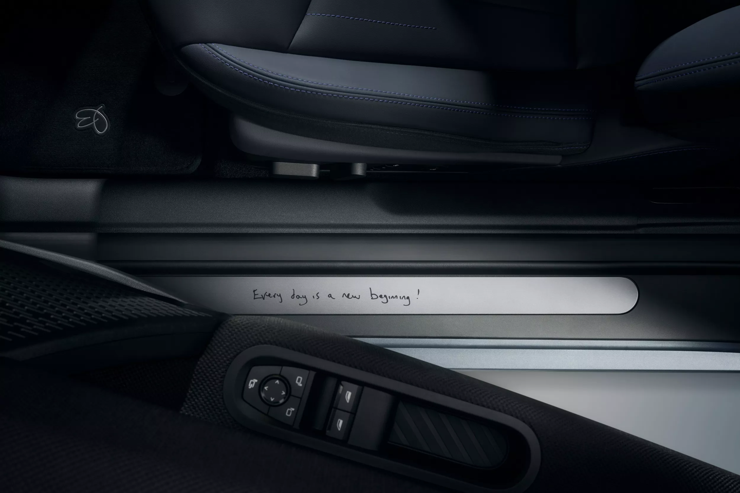 内饰方面,驾驶员上车前,会看到迎宾灯在地面投射出“Hello”字样,同时,专属门槛饰板上还刻有“Every day is a new beginning”(每一天都是新的开始)的格言。