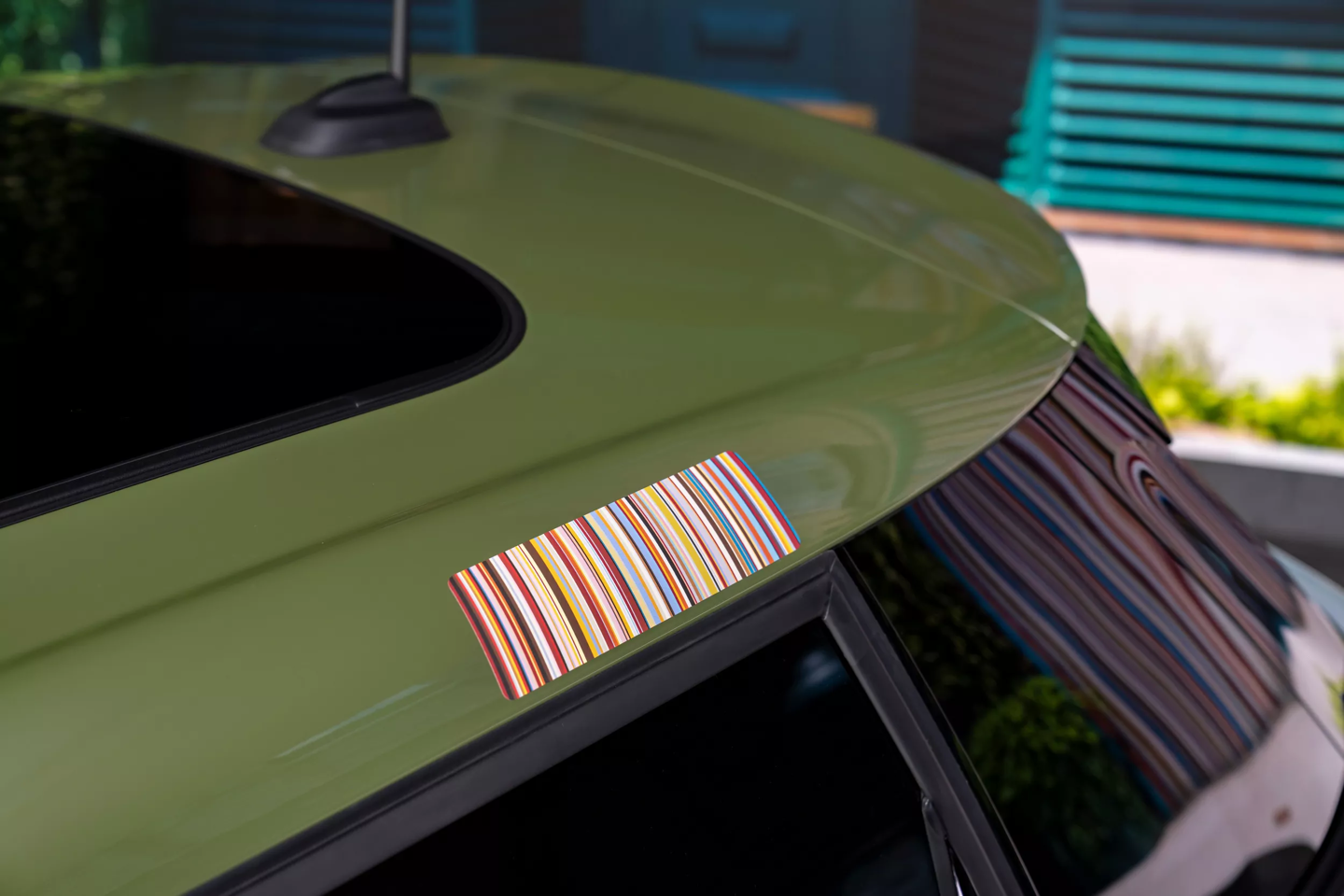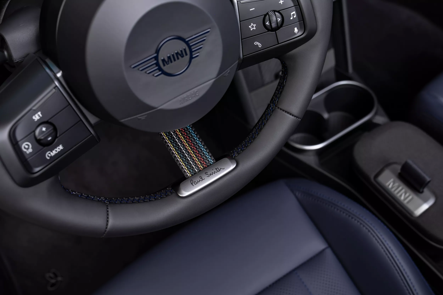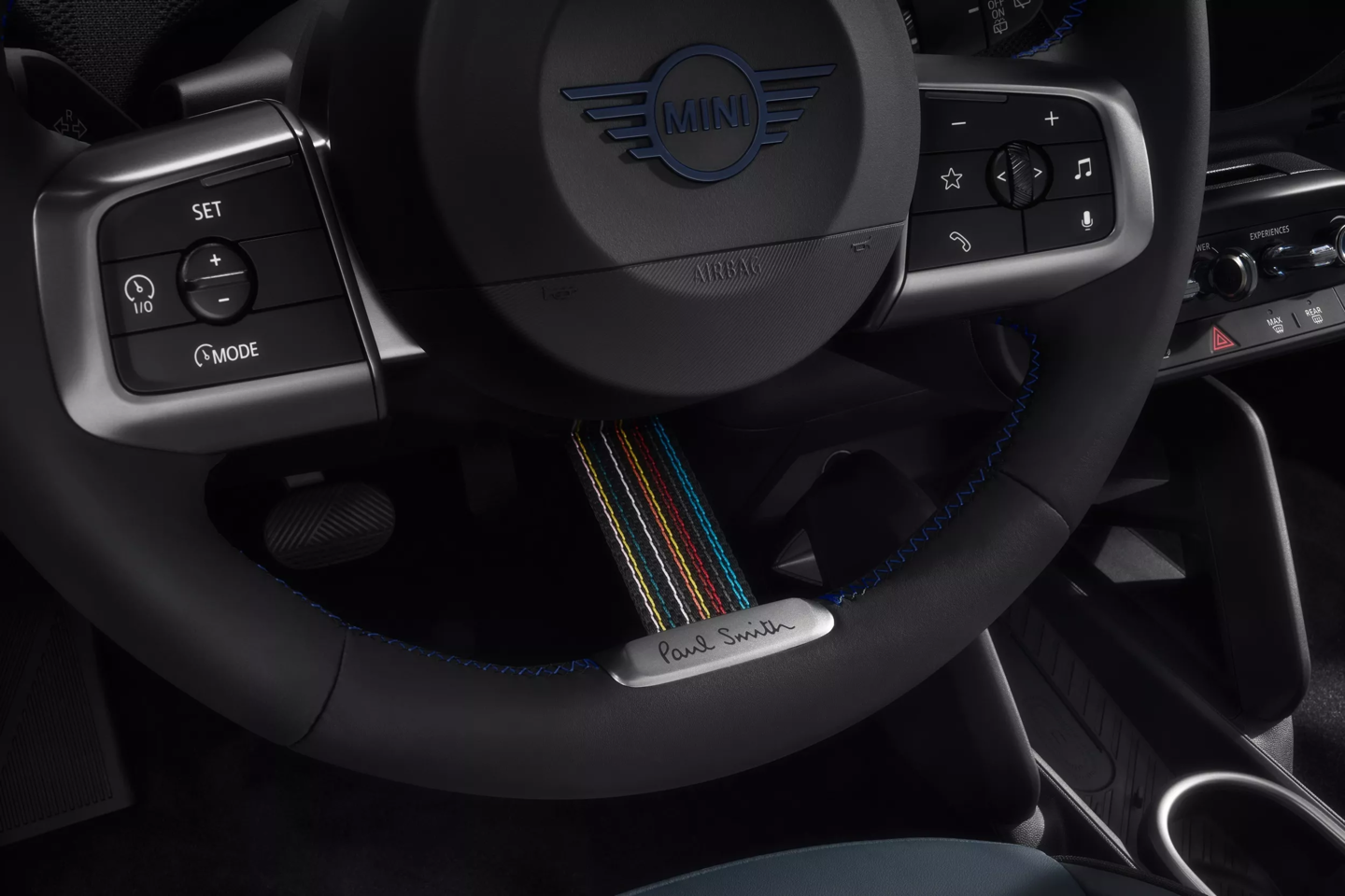 设计师保罗・史密斯的签名巧妙地融入尾灯之间的水平饰条上。此外,设计师标志性的“Signature Stripe”彩色条纹图案出现在车顶驾驶员一侧,成为其最鲜明的身份标识。